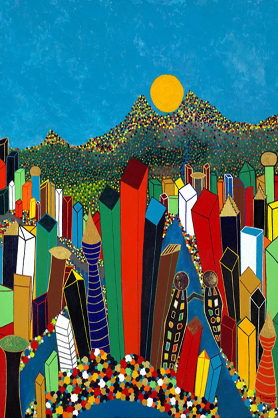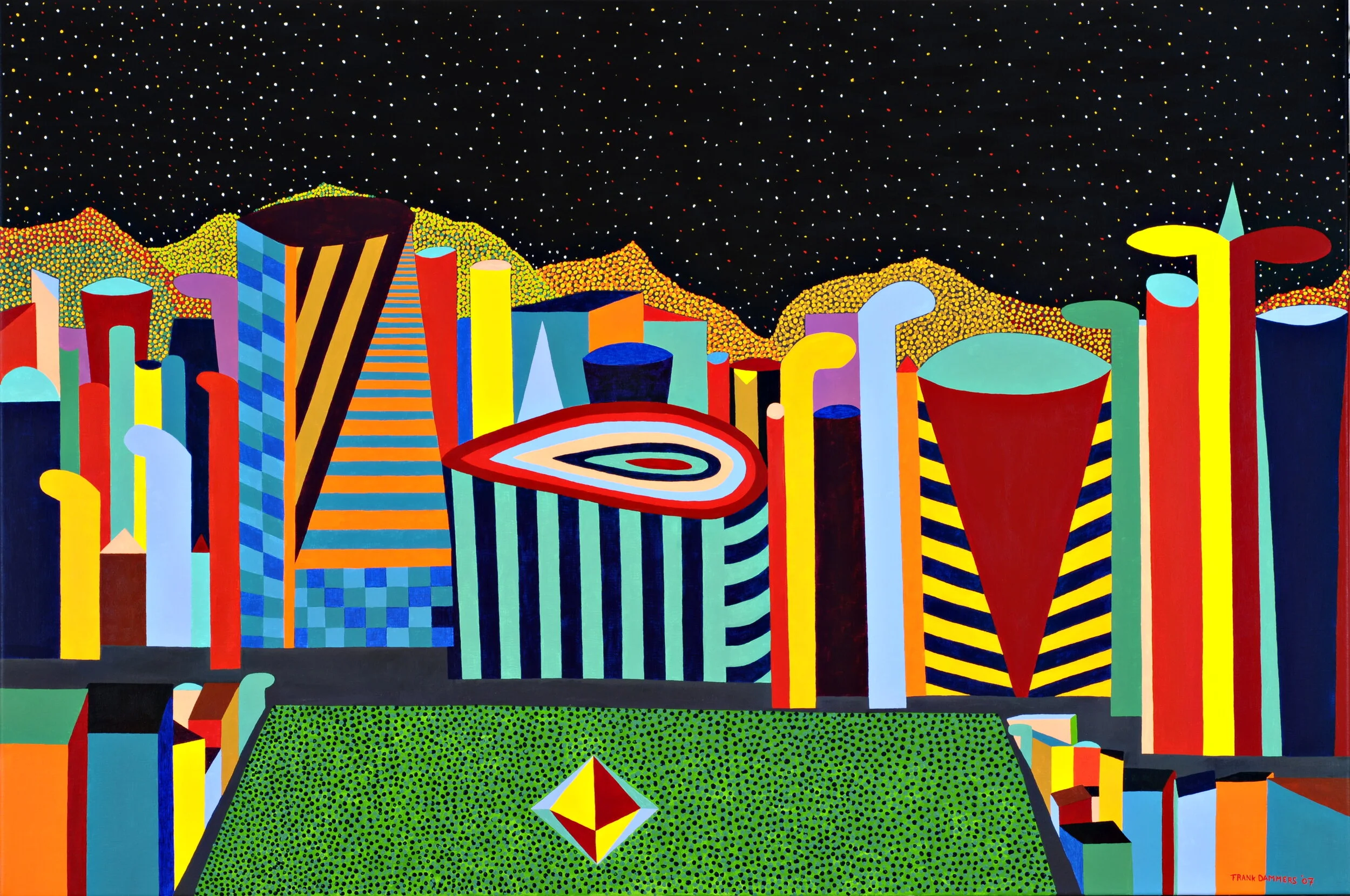 The painting ‘Imagination City’ is created in 2007 by Frank Dammers. The painting is included in the other art collection. The painting is painted with acryl on Belgian linen and has the following size: 39,4 x 59,0 inch.