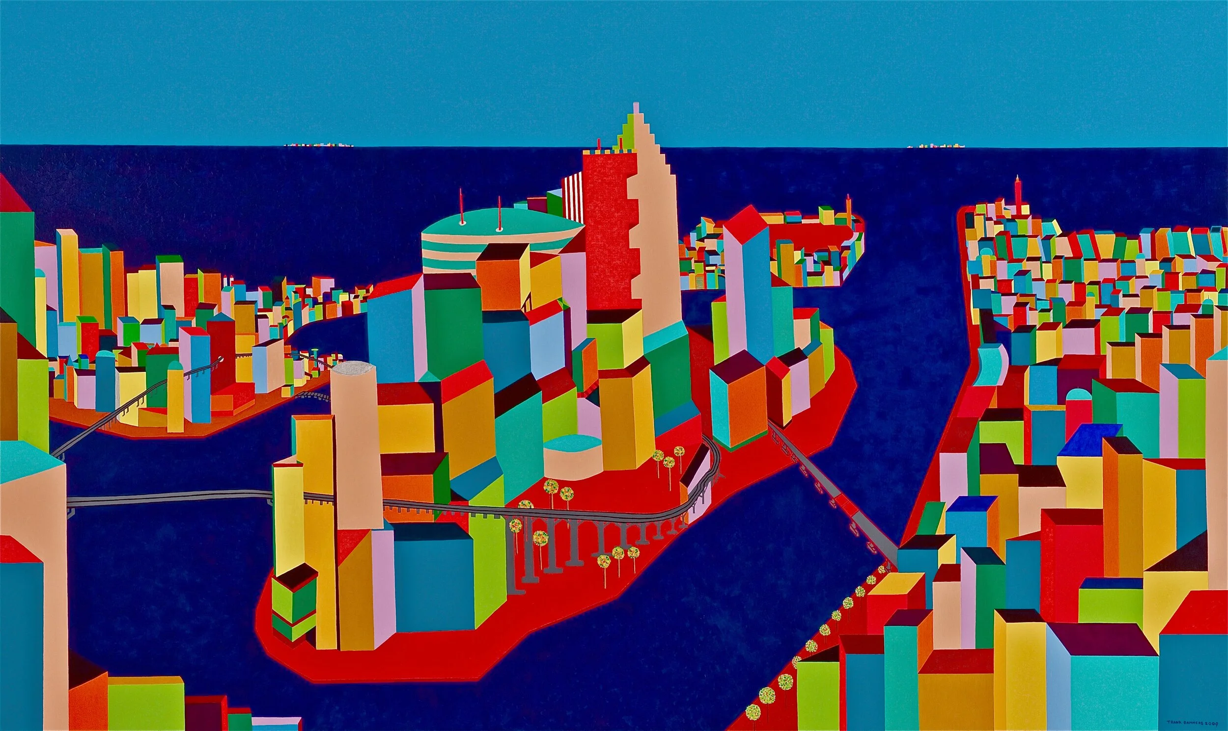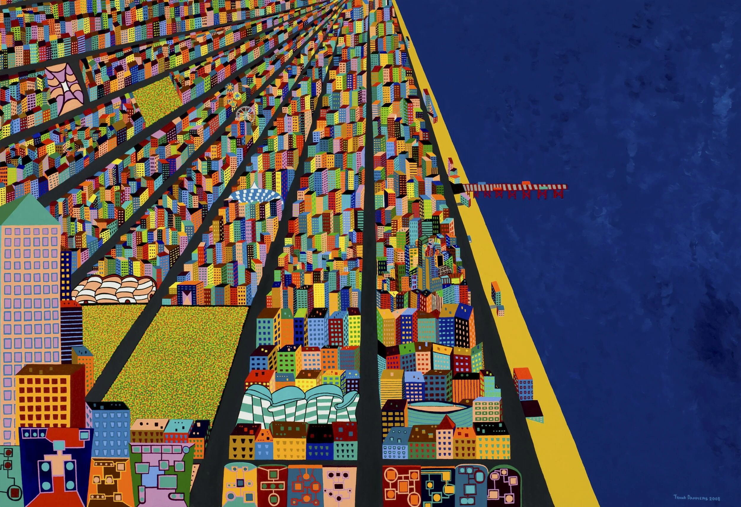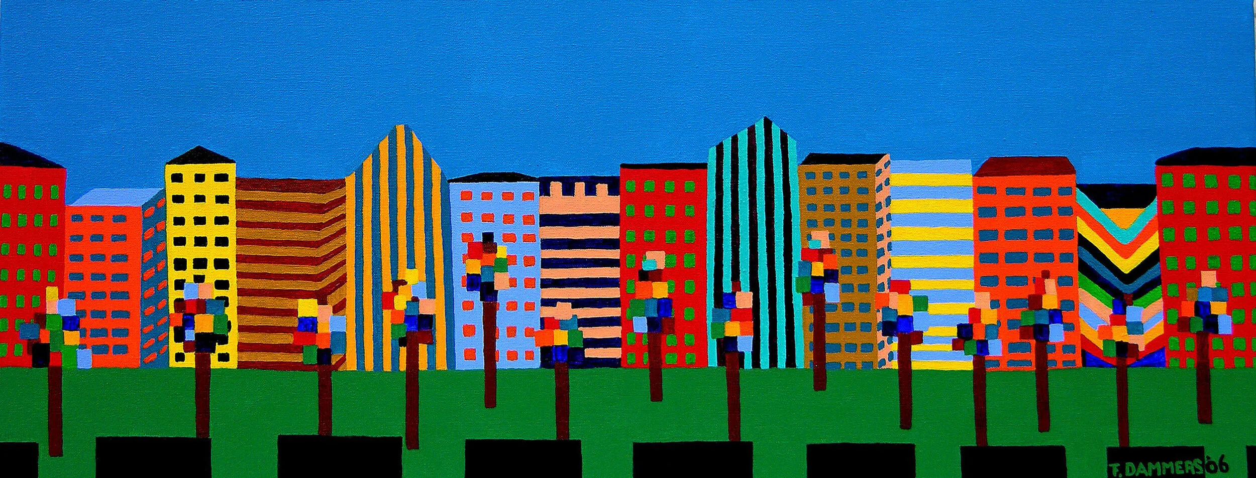 The painting ‘Metropolis’ is created in 2009 by Frank Dammers. It is Frank’s largest painting. The painting is included in the other art collection. The painting is painted with acryl on Belgian linen and has the following size: 59,0 x 98,4 inch.
