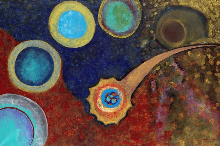 The painting ‘Cosmos’ is created in 2004 by Frank Dammers. The painting is included in the other art collection. The painting is painted with acryl on cotton and has the following size: 39 X 59 inch.