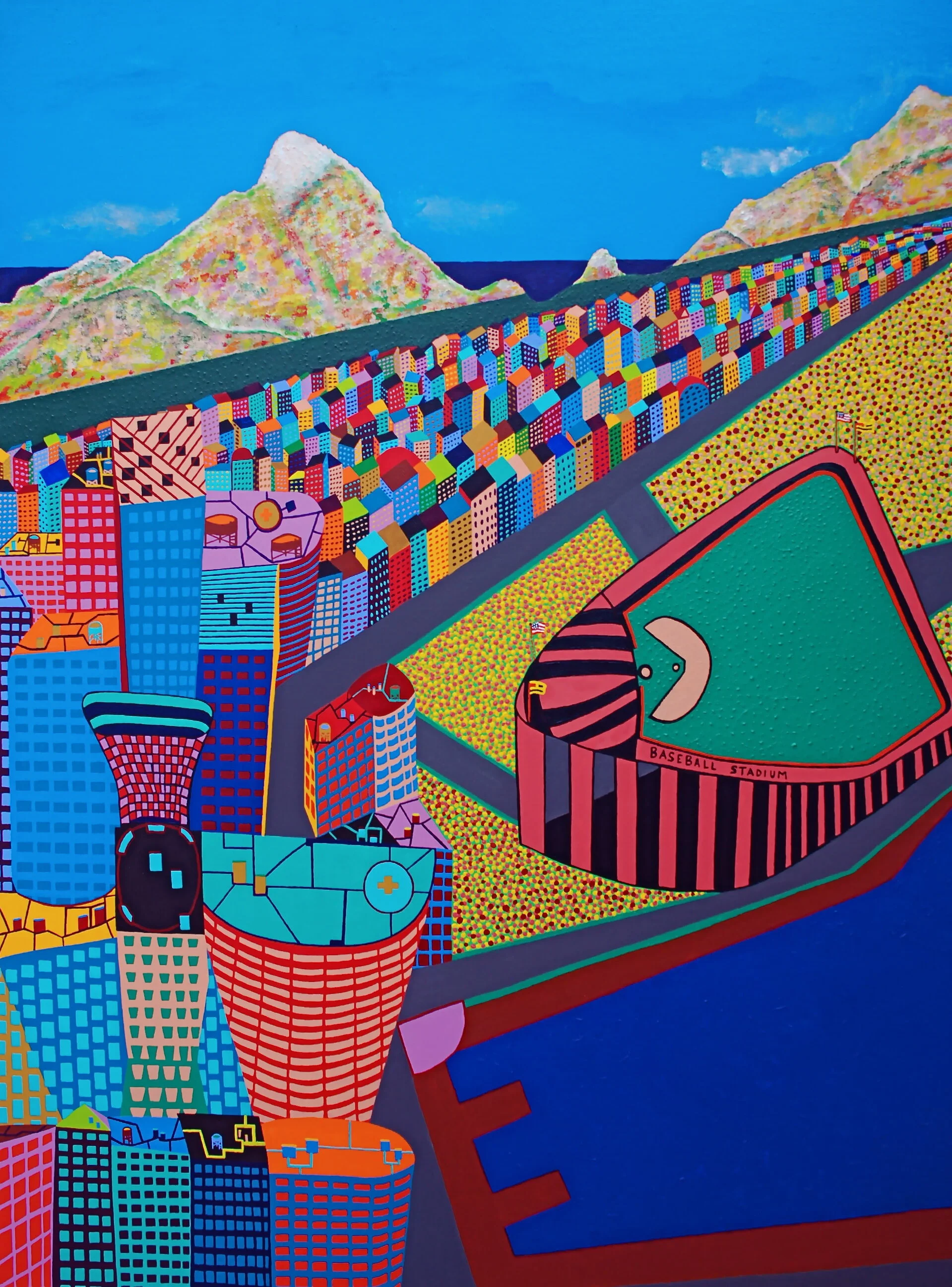 The painting ‘Baseball City’ is created in 2009 by Frank Dammers. The painting is included in the other art collection. This painting shows Frank’s love for baseball. The painting is painted with acryl on Belgian linen and has the following size: 47,2 x 35,4 inch.